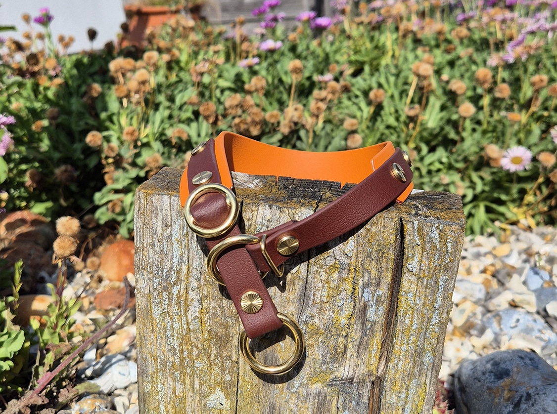 Mix and match from our full colour range, choose your hardware finish (Antique Brass, Solid Brass, or Stainless Steel), and for collars, select the ideal width for your dog.